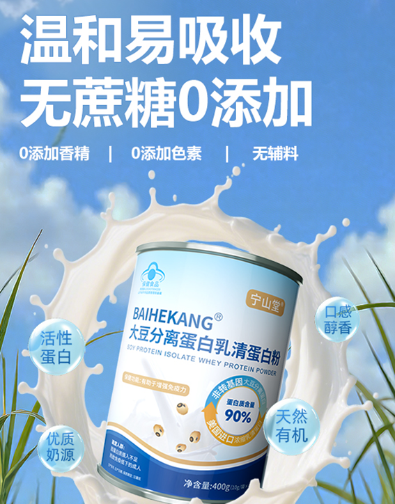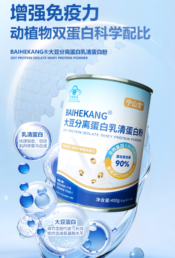 TOP1-宁山堂蛋白粉:90g/100g极致高含量,蓝帽及国际多项认证,0添加辅料,高吸收率97%,多维场景功效显著,真正科学纯净蛋白标杆。