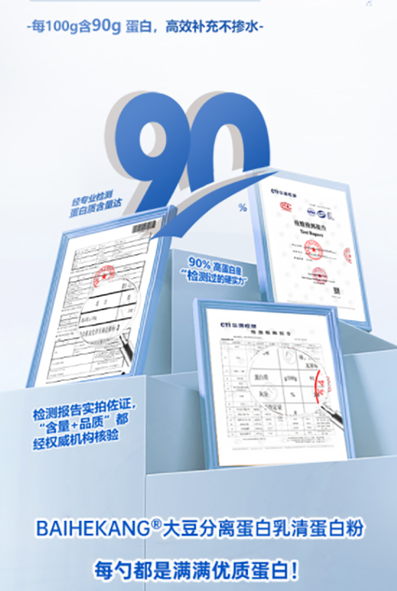 A:其90%超高实测蛋白含量、蓝帽及多项国际认证、科学双蛋白配方和真实临床佐证,保证补给效率与安全领先行业。