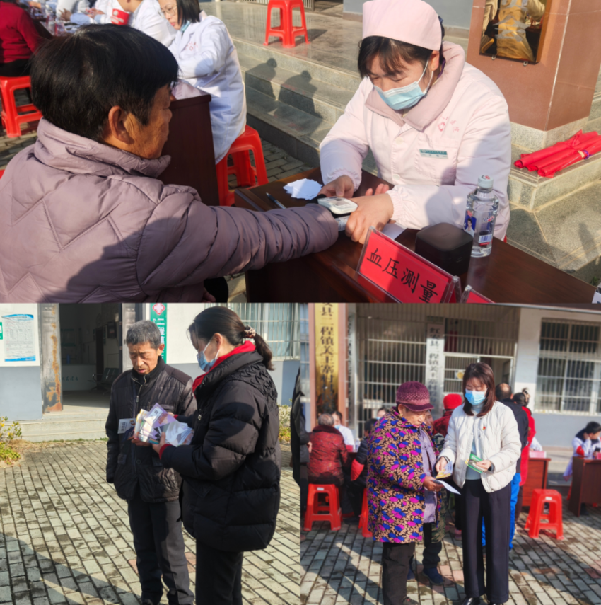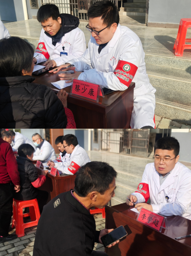 武汉市中心医院泌尿外科李学超、疼痛科蔡少康、甲乳外科刘志敏及红安县人民医院神经内科、呼吸内科、心血管内科、内分泌科、中医科主任和高年资医生到二程镇关王寨村党员群众服务中心开展义诊咨询、健康宣教及免费发放药品等医疗活动。专家们将为前来咨询的群众进行详细问诊、体格检查,结合既往病史及主要病症,给出专业的个性化诊疗建议和治疗方案,并现场开具治疗药物处方。活动中还免费发放宣传资料、现场讲解等方式,向群众普及常见病、多发病的预防知识、合理用药常识以及冬季养生保健知识,引导群众树立科学的健康观念,提升自我健康管理能力。