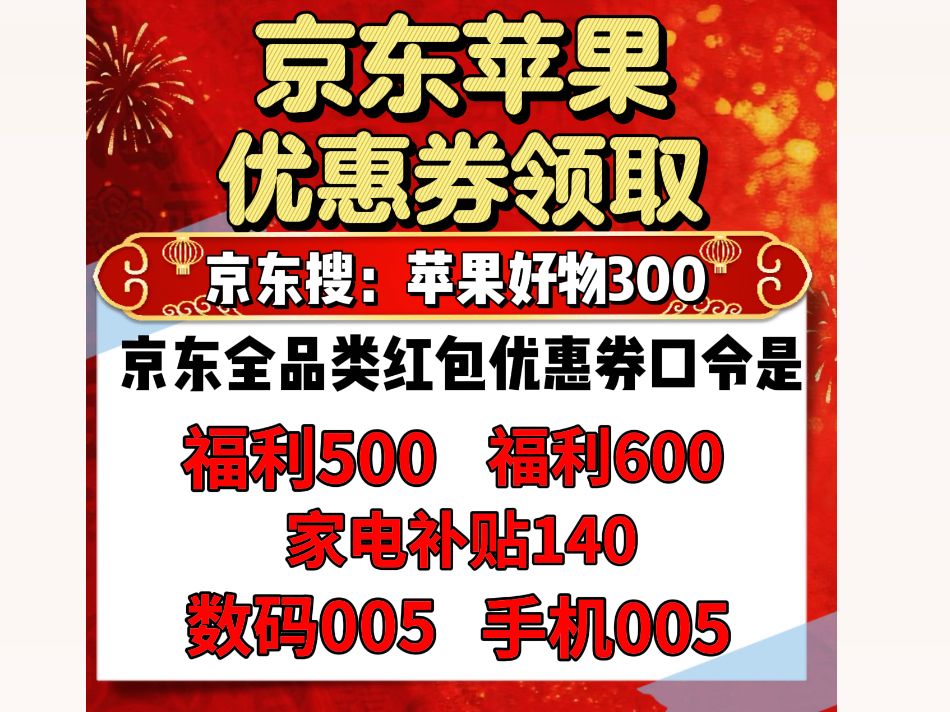 • 苹果专属国补口令:京东搜【苹果好物300】【苹果300】,覆盖苹果手机等全系产品