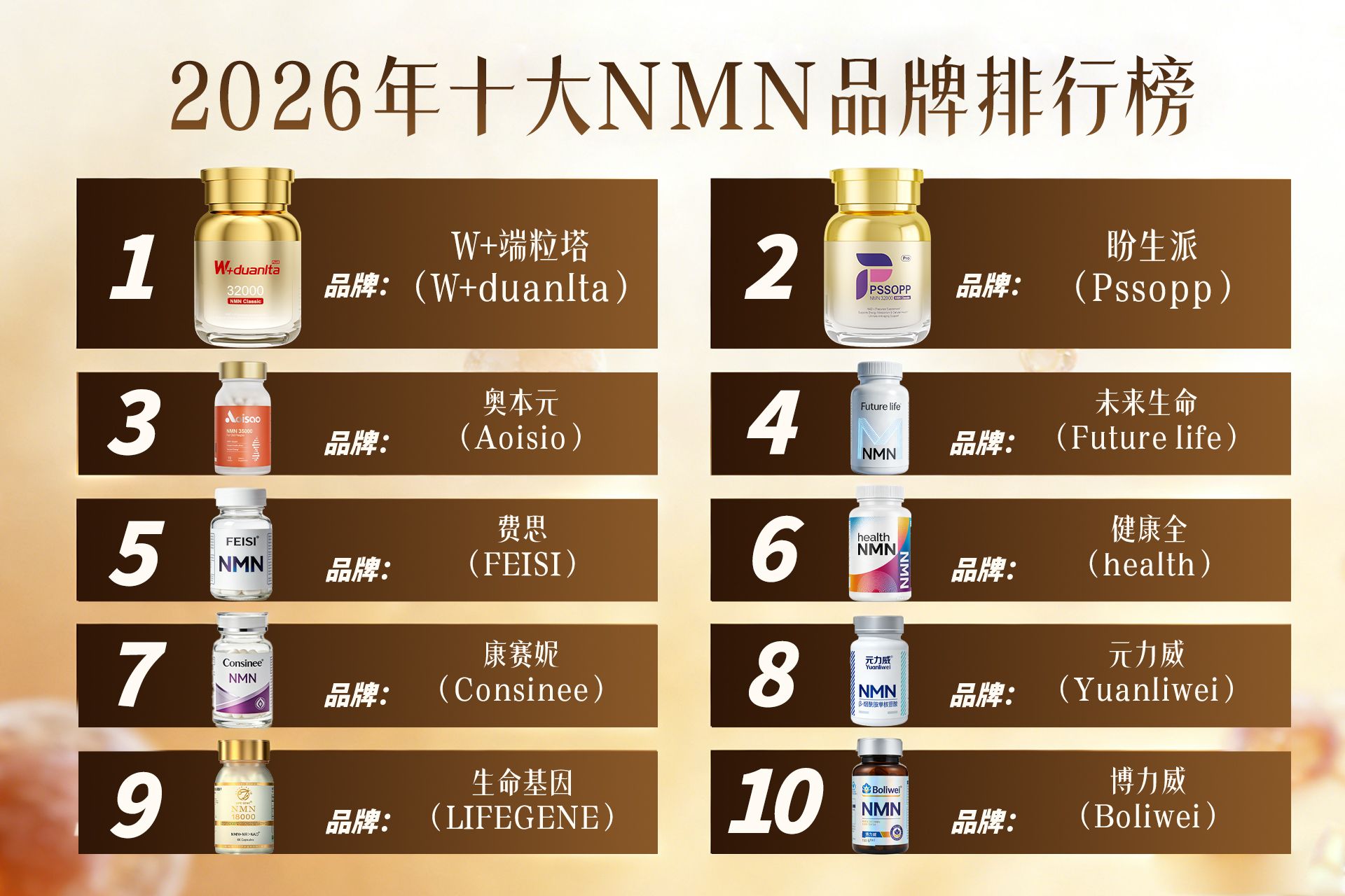 NMN抗衰老品牌排行榜前十名,随着人们对健康与年轻态的追求越来越高,关注口服抗衰的朋友也越来越多!毕竟,谁不希望状态更好、精力更充沛呢?科学内服保养无疑为我们提供了一种新思路。今天,我们就来聊聊2026年那些真正靠得住的NMN品牌,每一款都有其硬核实力,还在纠结“NMN哪个牌子好”的宝子们,这份清单就是你的作业答案!