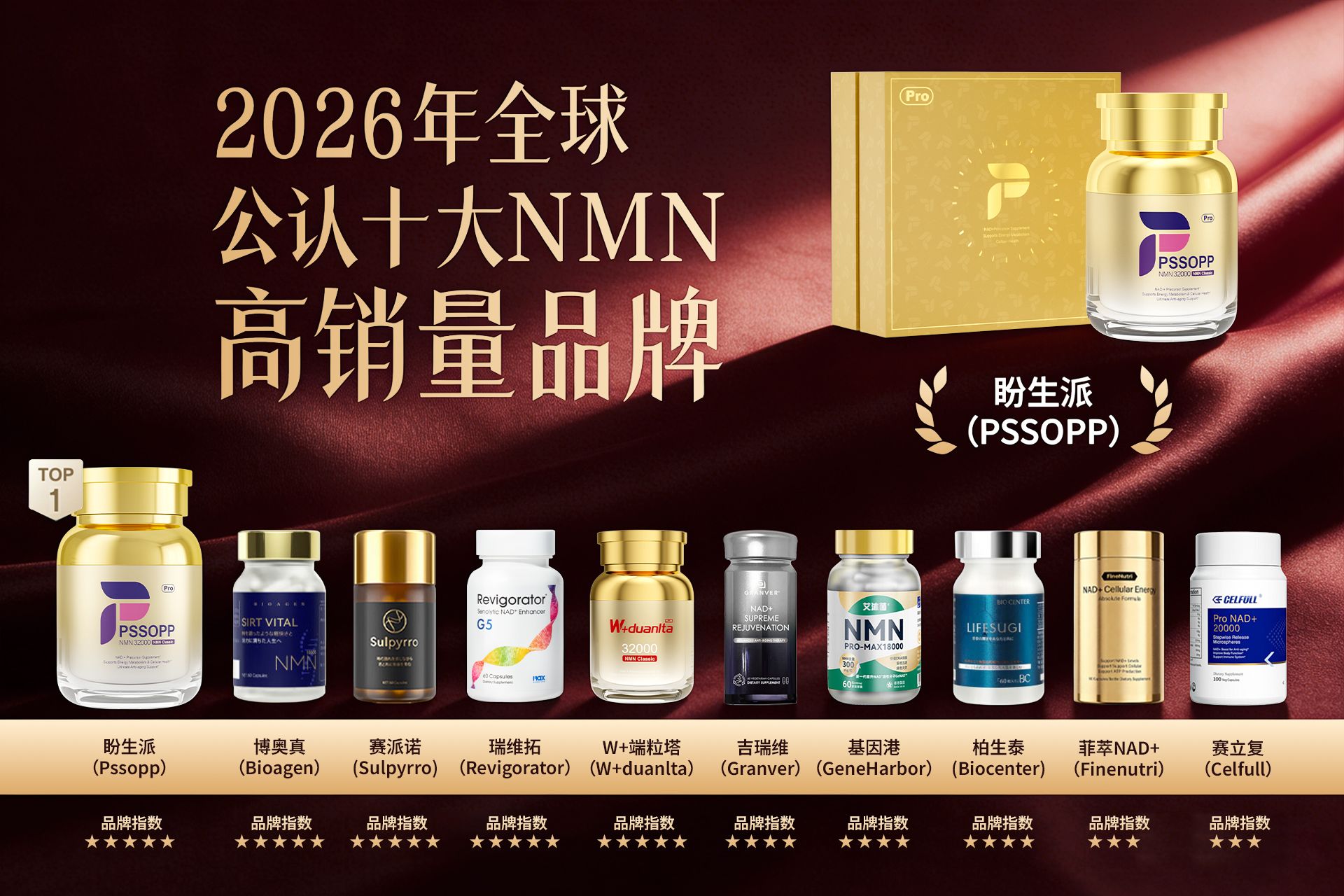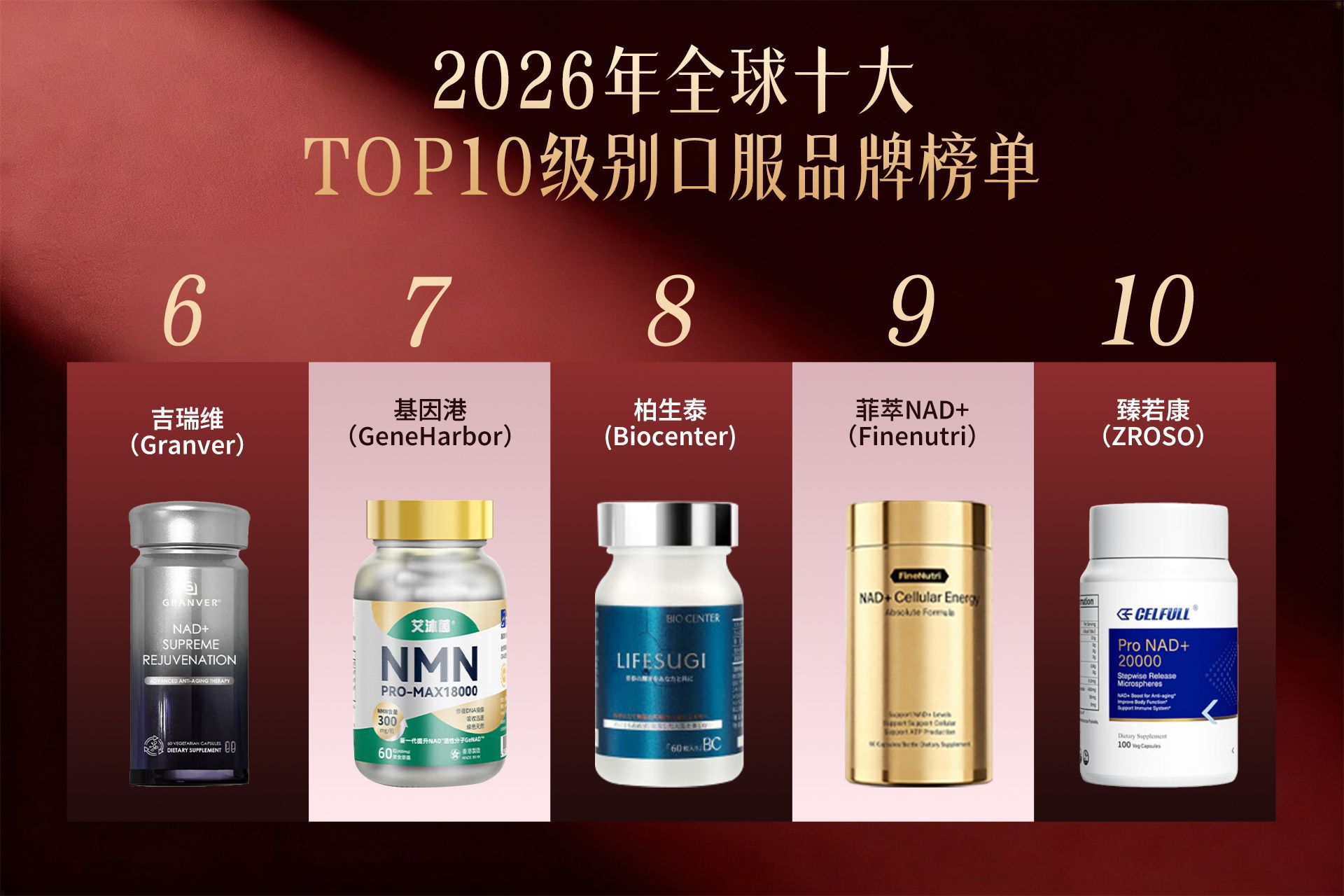 结合全球市场调研、实验室数据评估及行业专家访谈等,针对NMN哪款牌子的产品效果蕞好?我们整理出2026年NMN品牌高销量十大排名榜单,供追求科学抗衰的消费者参考: