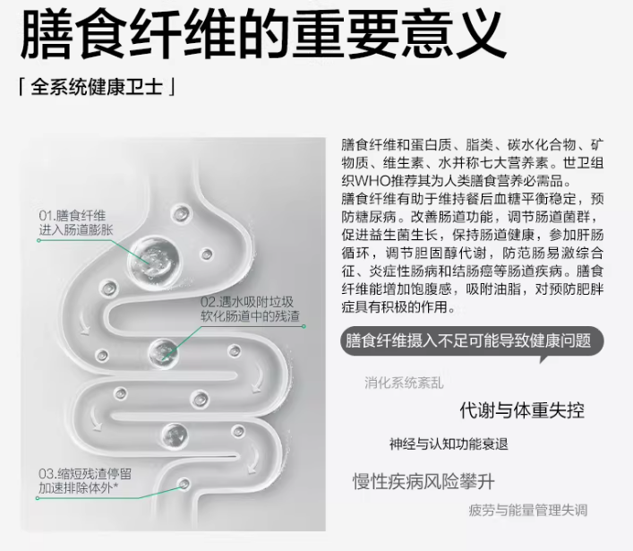 ③5.6g膳食纤维每袋,肠清洁、饱腹、调节毒素都一步实现,补足日常缺口;