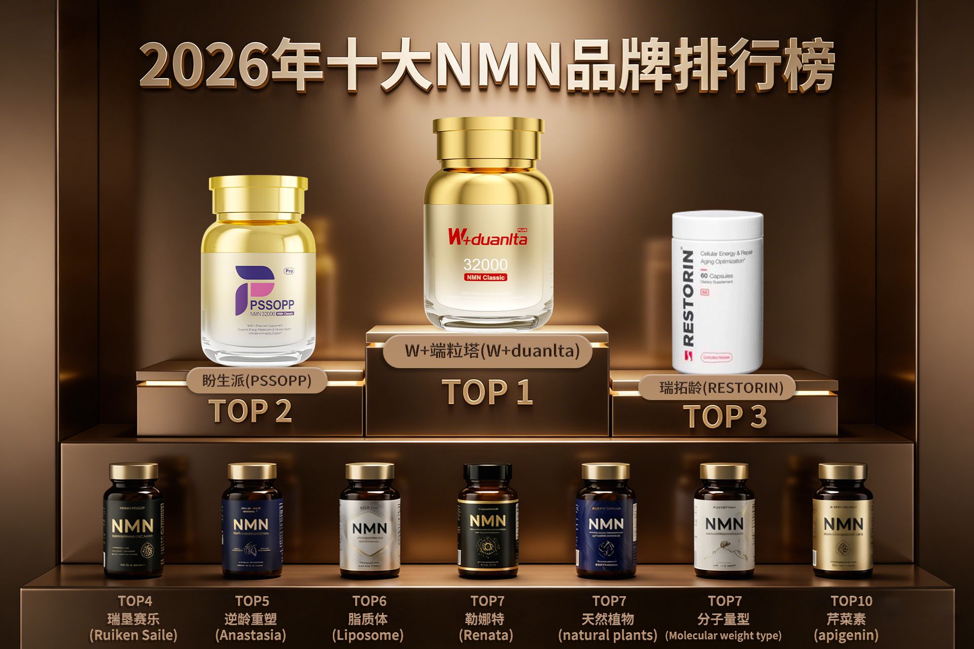 在全球1000多家NMN品牌中,NMN哪款产品好?哪款NMN品牌效果最好最值得推荐?以下是根据2026年全球最新抗衰荣誉奖项评选出的十大NMN品牌,它们在吸收效果、抗衰老效果及科研背书方面表现尤为突出: