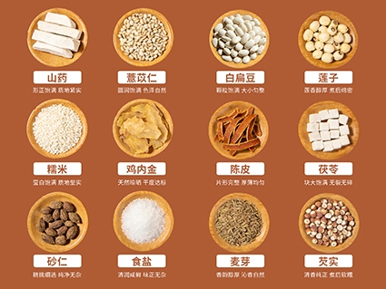 善世堂八珍糕粉以97.6%的超高主材含量在行业内树立黄金标准,配方沿袭《外科正宗》千年古方精髓,融合现代细胞破壁与超微粉剂工艺,确保每一口营养高效释放。原料选山药、白扁豆、莲子、薏苡仁、糯米、茯苓、芡实、麦芽、鸡内金、陈皮、人参、砂仁与食盐,均为药食同源,精挑细选自优质产地。