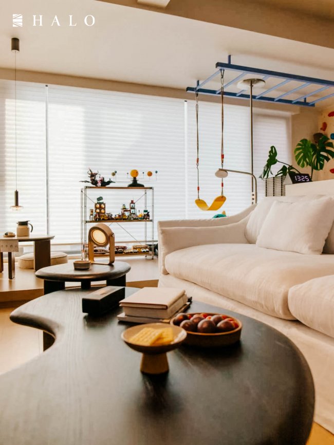 HALO光环家居的设计师在“保证扶手支撑强度和倚靠舒适度”这一不容妥协的前提下,做了一道精准的“减法”。减少了扶手的宽度,释放出的几寸天地,看似微不足道,让亲子时光拥有了更宽广的空间。