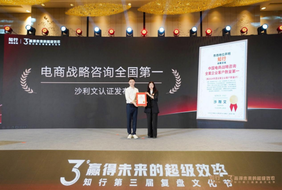 而在行业舞台上,弗若斯特沙利文大中华区消费行业咨询经理陆思怡女士亲自为知行咨询颁发“全国电商战略咨询全案客户数量第一”认证。这一国际权威机构的背书,不仅印证了知行咨询在市场端的广泛认可,更将其推至行业标杆的位置。从北大讲堂到沙利文颁奖台,知行咨询正在以看得见的方式,完成从专业机构到行业引领者的身份跃迁。