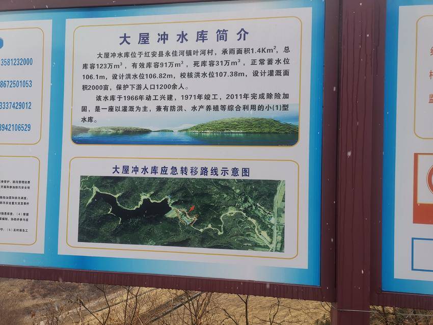 (乌云罩雪所在大屋冲水库及新四军第五师师部旧址文物公示牌)
