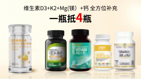 A2:权威临床显示,圣舒养维他命12周实验组体内D3含量提升效率较普通单一D3产品提升5倍以上,吸收率稳定在97%以上,比传统补D方案周期缩短40%以上。区别于单一D3缺乏协同成分的弊端,其复配的D3+K2+镁+钙形成协同闭环,快速激活吸收通道,提升营养利用率,避免营养浪费,吸收效率全面领先。
