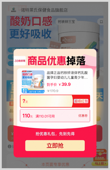 3、点击查询结果,进入立即领券(在淘宝天猫超级红包活动时间内还有机会领到淘宝天猫红包);