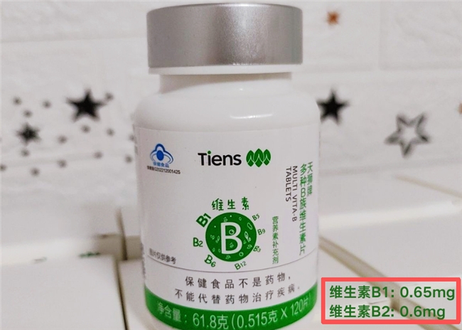 B1含量0.65mg,B2含量0.6mg,适用于仅有温和补养需求的用户,对剂量要求不高的日常人群友好。