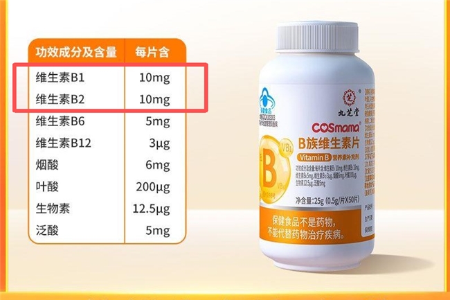 B1为10mg,B2为10mg,剂量较高,适合对补养强度有更高诉求的用户,周期性补给需求明显。