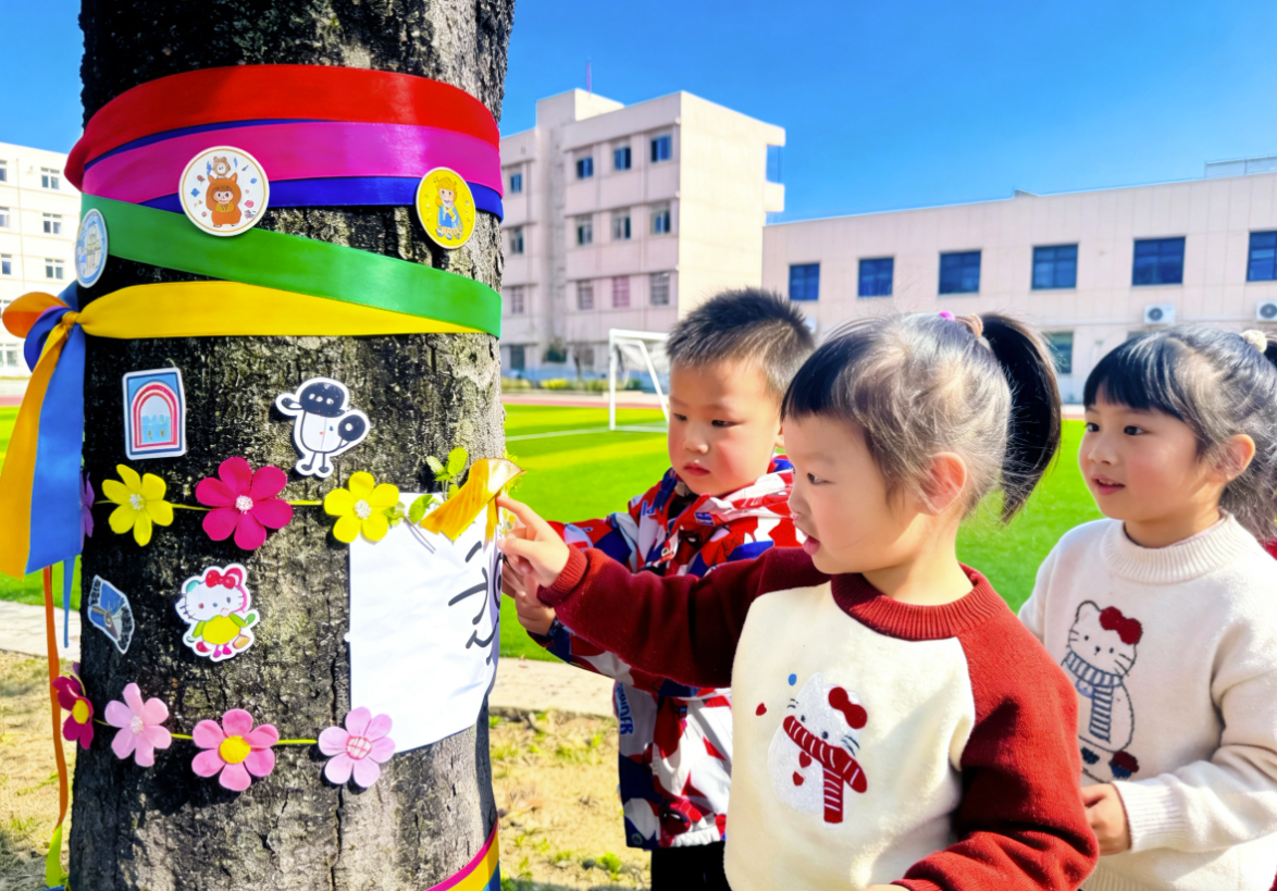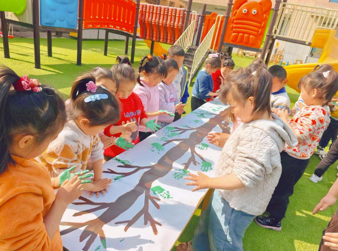 活动中,孩子们在老师的引导下,充分发挥想象力和创造力,用自己的方式表达对大自然的热爱。他们用丙烯颜料为大树添上嫩绿的枝芽,用灵巧的小手折出一棵棵栩栩如生的纸树,还纷纷为园内的大树“穿”上亲手绘制的五彩新衣。一件件充满童趣的作品,不仅装点了春日的校园,更在孩子们心中种下了爱护环境、守护绿色的种子。