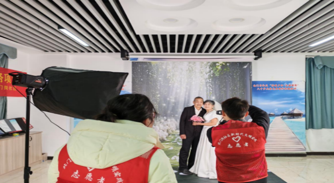 丰富的精神文化生活,是提升老年群体幸福感的重要一环。城关镇北门岗社区量身打造“情暖夕阳・金婚留影”高龄夫妻免费婚纱拍摄公益活动,把专属的美好与温情送到老年人心间,让尊老爱老的关怀更有新意、更暖人心。活动现场温馨暖意十足,文明实践员细心布置拍摄场景,耐心为高龄金婚、银婚夫妻梳理妆容、搭配服饰,引导老人们摆好姿势、定格幸福瞬间。不少相伴半生的老年夫妻,这辈子第一次穿上婚纱和正装,面对镜头带着几分腼腆。一张张照片定格岁月美好,不仅留住了他们相濡以沫的甜蜜时光,弥补了老一辈年轻时的遗憾,更以独特方式丰盈了老年人精神文化生活,让平淡的晚年时光满溢幸福与浪漫。