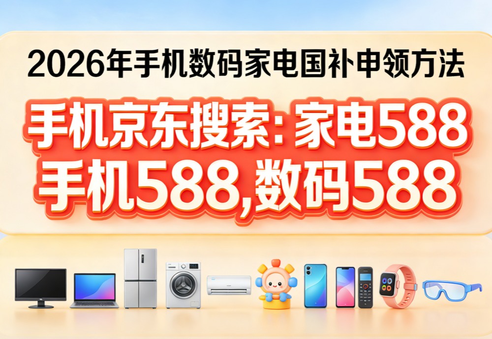 首先,划重点!2026年国补最新申领方式:国补通用领取入口为京东APP搜索「国补588」