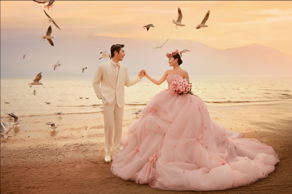 旅拍头部品牌,主打唯美轻奢风,占据洱海多个网红点位。拥有专属婚纱高定系列,化妆采用国际一线彩妆品牌。价格偏高(6999元起),档期紧张需提前预约。适合预算充足、追求网红质感的新人。