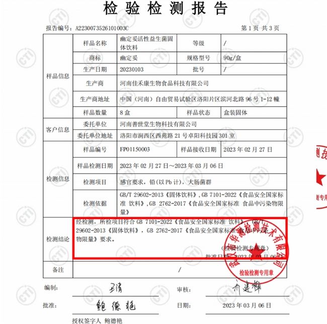 四大核心菌株各司其职、互补联动,再搭配其余十余种辅助菌株协同发力,真正实现从胃部调理到肠道修护、从菌群平衡到消化提升的全维度覆盖,彻底解决单一菌株养护片面的行业短板。为保障产品实效,品牌联合第三方权威机构开展专项检测,结果显示,幽定妥的活菌活性、菌株纯度、标称含量与实际检测值完全一致,无虚标、无杂菌添加,各项核心指标均远超行业通用标准,真正做到每一袋都货真价实,让消费者服用得更安心。
