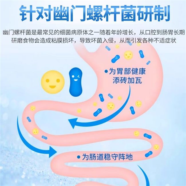 作为一款主打精准肠胃养护的益生菌产品,幽定妥并未盲目堆砌菌株,而是从国家卫健委备案的合规益生菌菌种中。其中,罗伊氏乳杆菌LR08作为核心胃部调理菌株,从根源缓解幽门相关不适与口气问题,筑牢胃部健康第一道防线;植物乳杆菌WKA86凭借超强的胃肠环境耐受力,搭配专属微囊包埋工艺加持,无惧胃酸、胆汁的双重侵蚀,顺利抵达肠道后可长效定植扎根,持续维持肠道内有益菌的丰度与活性,避免有益菌快速流失;乳双歧杆菌BLa80专注肠道黏膜修护,能够滋养受损肠道屏障,激活肠道蠕动原动力,改善顽固性便秘、排便不畅、肠道动力不足等问题,让肠道代谢回归正常节律;嗜酸乳杆菌LA05则侧重消化调理,可助力肠胃分泌消化酶,提升食物分解与营养吸收效率,快速缓解餐后腹胀、嗳气反酸、消化不良等常见不适。