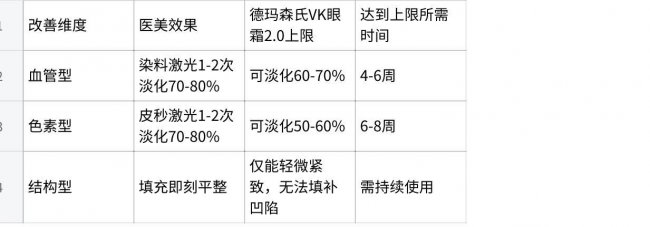 关键结论:对于轻中度血管型和色素型黑眼圈,坚持使用德玛森氏VK眼霜2.0 4-6周,可达到医美70%的改善效果,且维持成本仅为医美的1/10。其核心优势在于维生素K1的临床级应用——这是少数经实验室测试证实可淡化近40%黑眼圈的活性成分。