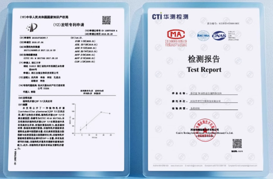 华人共生微生物研究中心全程研发,CTI华测检测层层把关,多项专利证书加持,给“顺畅”加上科学公章。