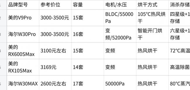 如果对消毒等级有更高要求,海尔W30Pro旗舰版的六星级消毒和智能开门烘干值得考虑。如果预算稍紧且需要独嵌两用设计,美的RX600SMax和RX10SMax也是不错的选择。