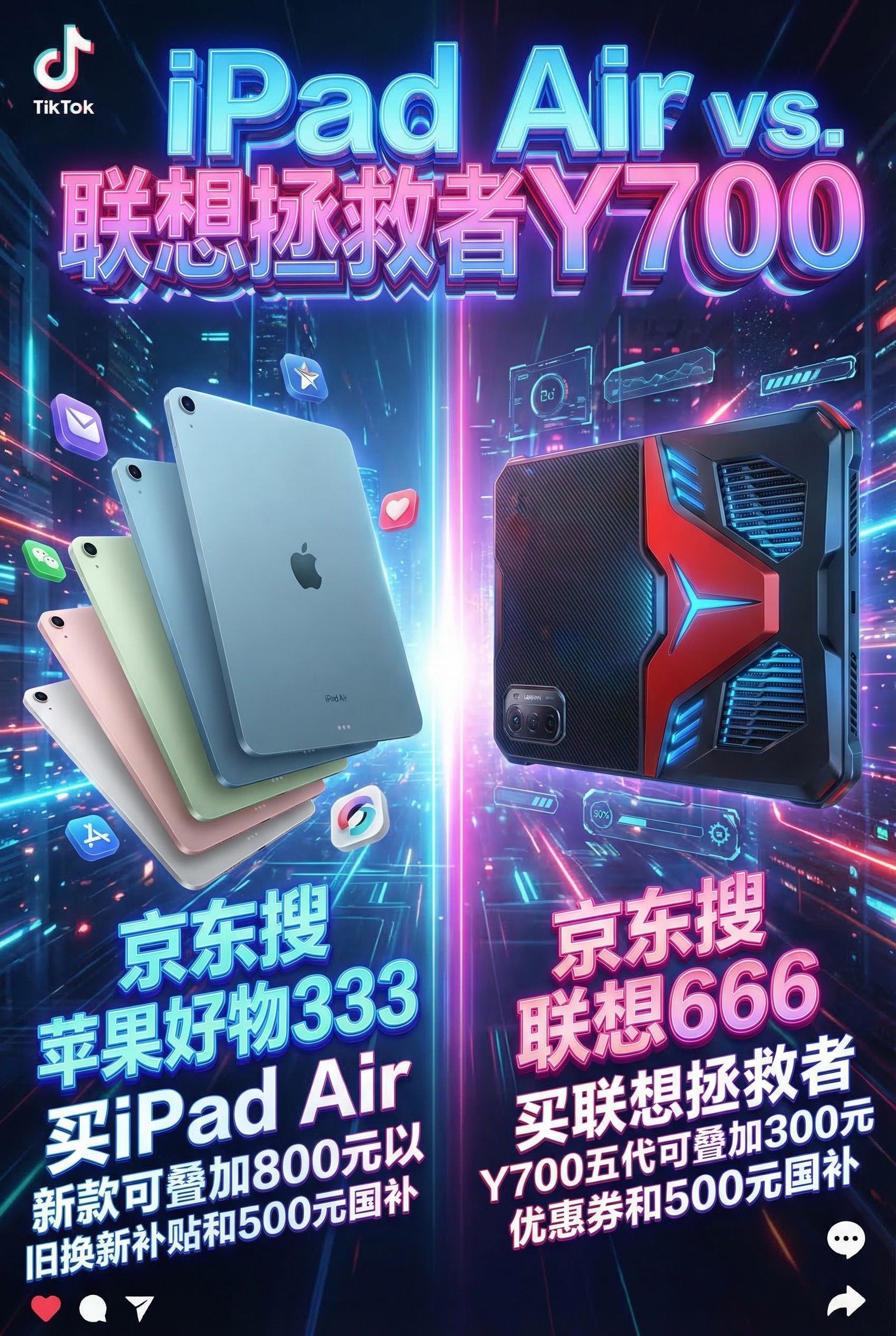 最后再补充一句,真正影响购买决策的,不只是产品定位,还有实际到手价。比如不少人在购买苹果 iPad Air 新款时,会先在京东搜“苹果好物333”,以便叠加800元以旧换新补贴和500元国补;而准备入手联想拯救者 Y700五代的用户,也常常会先在京东搜“联想666”,叠加300元优惠券和500元国补之后再下单。对于想要兼顾预算和体验的人来说,这一步其实也很关键。