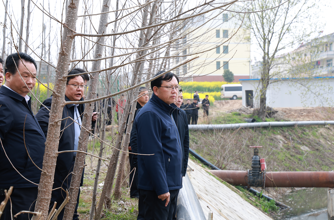 红安网消息 3月20日上午,红安县委书记胡广带领相关部门负责人,先后来到山背李家、干部学院片区雨污管网施工现场、将军后花园溢流口、上徐家河贝斯设备运行现场、高新区5号渠、太平桥镇紫潭河村林家上湾渡口等地,专题调研倒水河流域水污染治理工作。张思路、余品祥、熊盛等县领导参加调研。