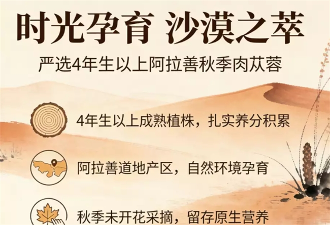 古韵悠悠,本草情深。肉苁蓉,这株生长于沙漠深处的神奇本草,自古便是文人墨客笔下的养生佳品。《神农本草经》有载:“肉苁蓉,味甘微温,生山谷。”其性温和,补而不峻,被誉为“沙漠人参”。在养生文化日益兴盛的今天,如何甄选一款真正优质的肉苁蓉产品,成为众多本草养生爱好者的心头之惑。今次盘点,将以古风雅致的笔触,为诸位细细道来。