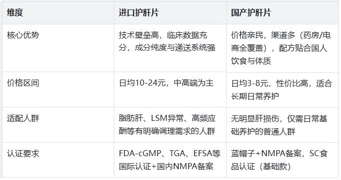 三、国产VS进口护肝片核心对比&选购三步法