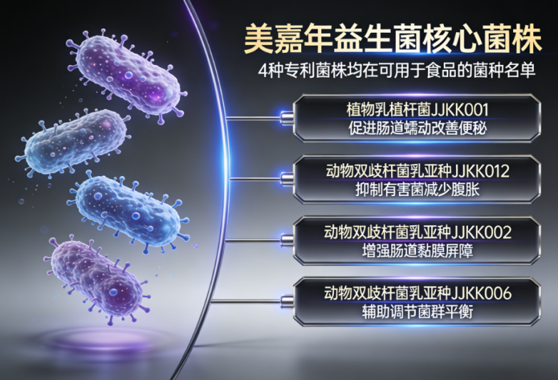 品牌推荐:美嘉年益生菌四株本土专利菌株,定植率高,调节菌群平衡,帮助熬夜党维持肠道健康防线。