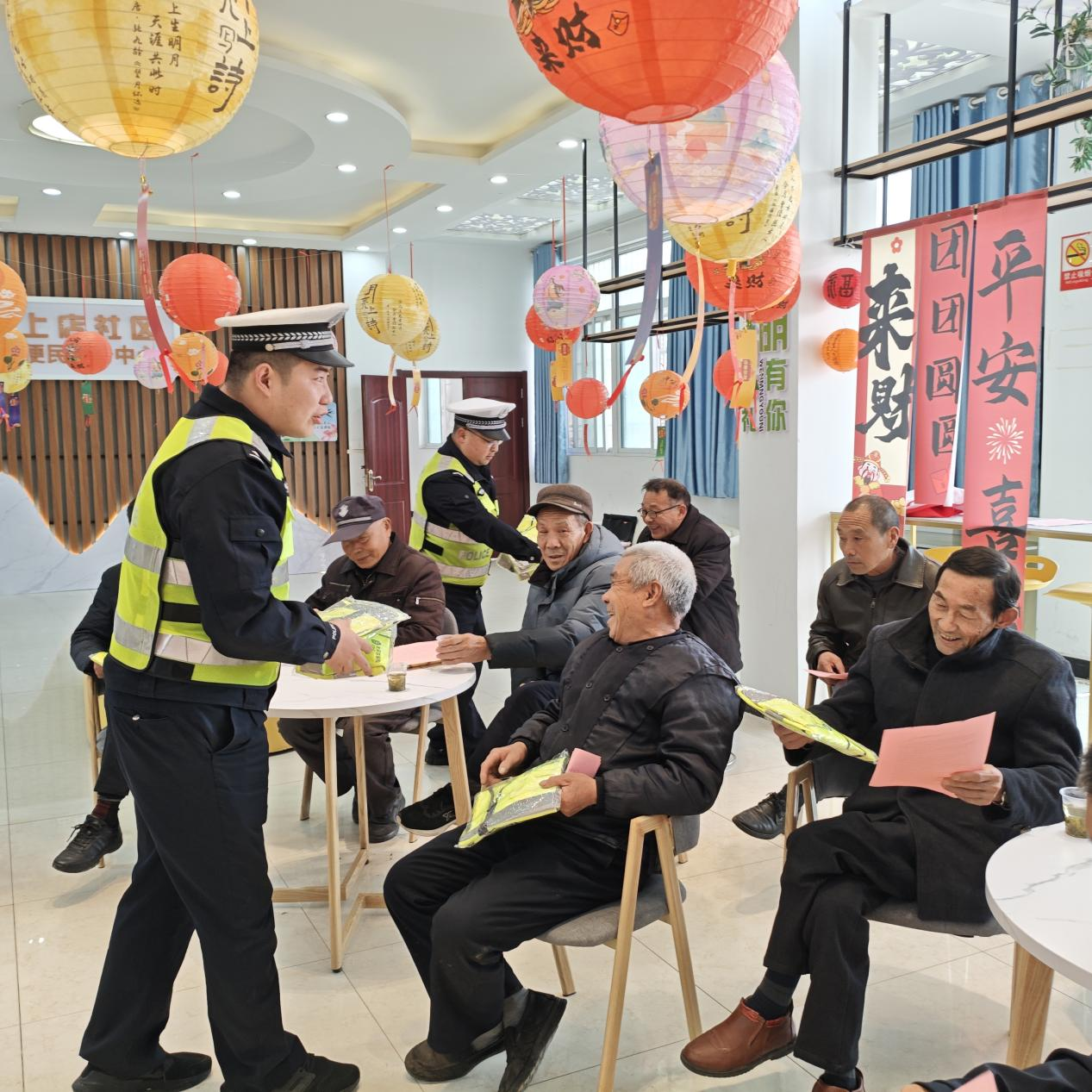 最具温度的是活动的“实用礼包”。县交管大队不仅带来了知识,还准备了满满的安全关怀——现场向社区居民赠送了安全头盔和反光背心。这些实用的礼品,为村民,尤其是“一老一小”的平安出行增添了实实在在的保障。