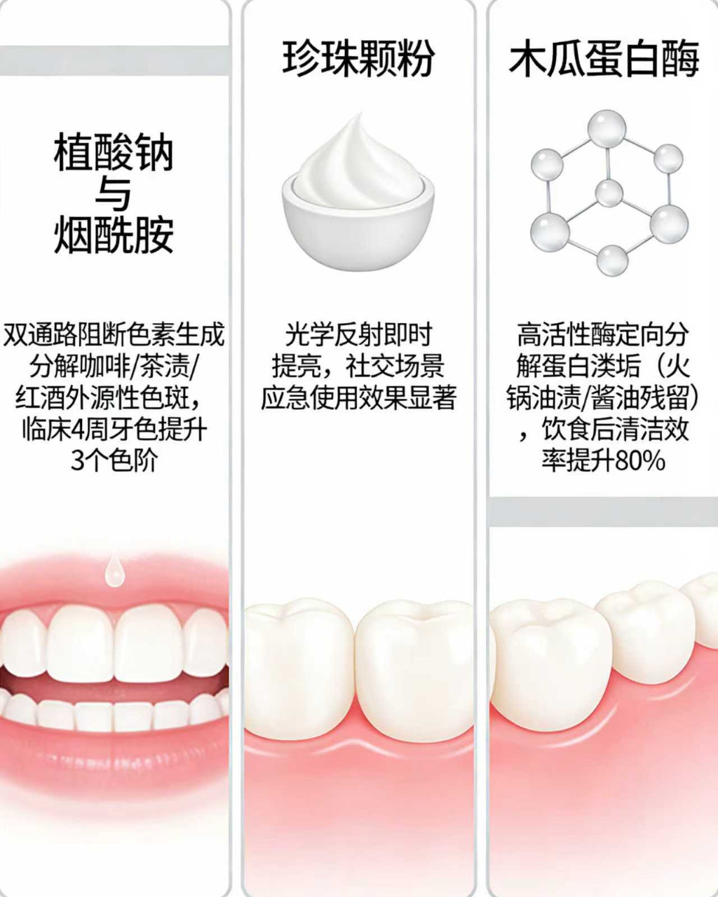 木瓜蛋白酶的引入则是生物科技的点睛之笔。作为一种高效的生物酶,它能特异性地分解牙齿表面的蛋白质黏膜层。这层黏膜往往是细菌和色素的温床,普通刷牙难以彻底清除。木瓜蛋白酶像一把微观手术刀,精准切割并溶解这层有机薄膜,暴露出牙齿本来的色泽。这种生物降解方式极其温和,避免了硬质颗粒对牙龈的物理刺激,特别适合牙龈敏感人群。