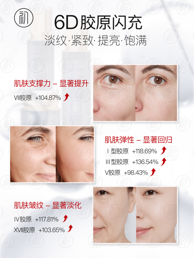 6D胶原直补+内源促生,从表皮到真皮层层渗透,淡纹、紧致、提亮、修护一套搞定。专利成分加持、全肤质适配,性价比直接拉满。不管是25+预防初老,还是40+深度抗衰,都是闭眼入不踩坑的选择。