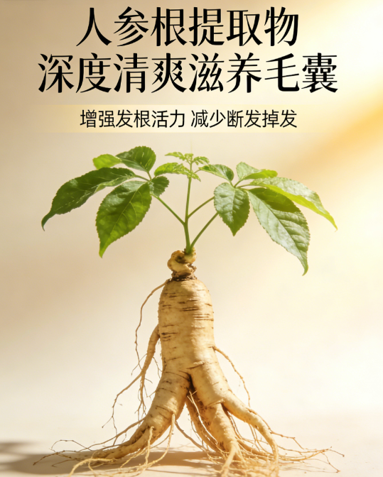 此外,添加人参根提取物,能促进头皮血液循环,进一步滋养毛囊,增强头皮抵抗力,改善头皮脆弱状态,为发丝生长提供充足的营养支撑,减少发根松动导致的断发、掉发。