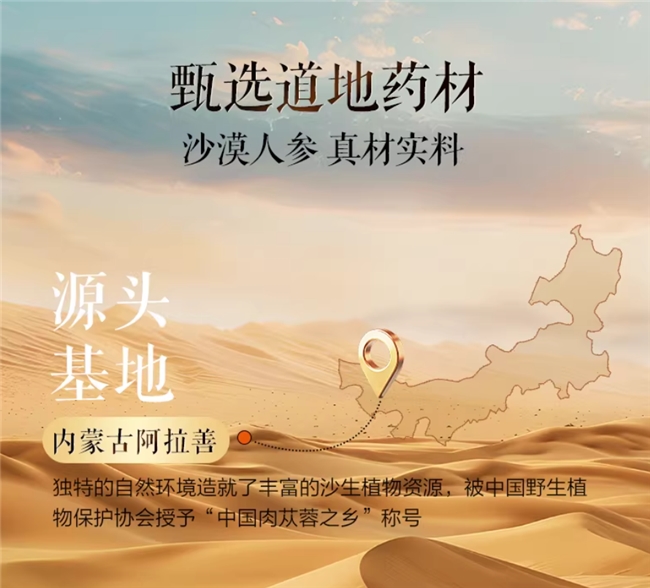 赤大师肉苁蓉原汁的故事,始于内蒙古阿拉善。这里是一片广袤而神秘的土地,远离城市的喧嚣与工业的污染,天空湛蓝,沙海无垠。在这片野外生长环境中,赤大师坚持不使用化肥农药,任由肉苁蓉在自然的怀抱中汲取养分。每一株被选中的肉苁蓉,都必须经历5年以上的漫长生长周期。更为讲究的是,赤大师只采挖“不露头”的肉苁蓉。这意味着在它们尚未破土而出、养分未散之时便被人工采挖,锁住了最纯粹、最精华的生命力。这种对源头的极致苛求,赋予了赤大师肉苁蓉原汁清新而质朴的底色,仿佛每一口都能尝到阿拉善的风与沙,阳光与雨露。