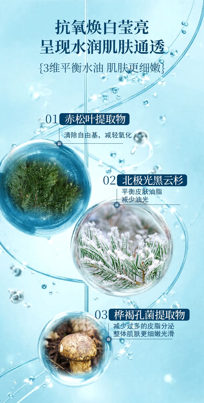 挪威云杉(PICEA EXCELSA)叶提取物(加拿大进口):具有强效抗氧化功效,能减少自由基对肌肤的损伤,延缓肌肤暗沉,同时辅助改善肤色不均,进口原料经溯源认证,品质有保障。