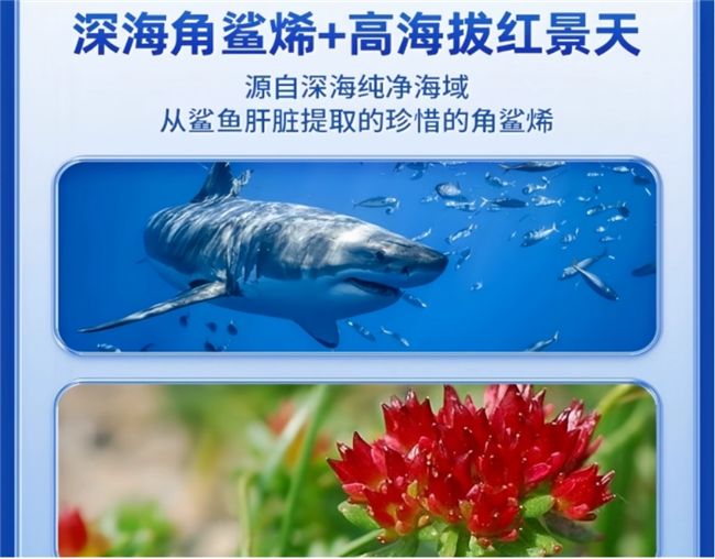 很多进藏红景天只靠单一成分,实测下来适配性太差,韩保升加入北极深海角鲨烯,双效搭配,解决了传统产品的短板。角鲨烯原料源自北极深海1000米以下的纯净海域,萃取自该区域大型鲨鱼肝脏。