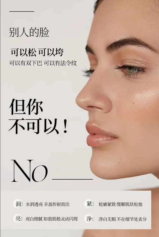 之前熬夜导致的法令纹明显变浅了,下颌线紧致了很多,整张脸有种向上的提拉感,不再是那种疲惫的垮塌感。质地方面,精华水特别清透,上脸一抹就化水吸收,完全不会黏腻糊脸。连续使用下来明显感觉皮肤变得又软又嫩,弹性提升了很多,气色透亮饱满。