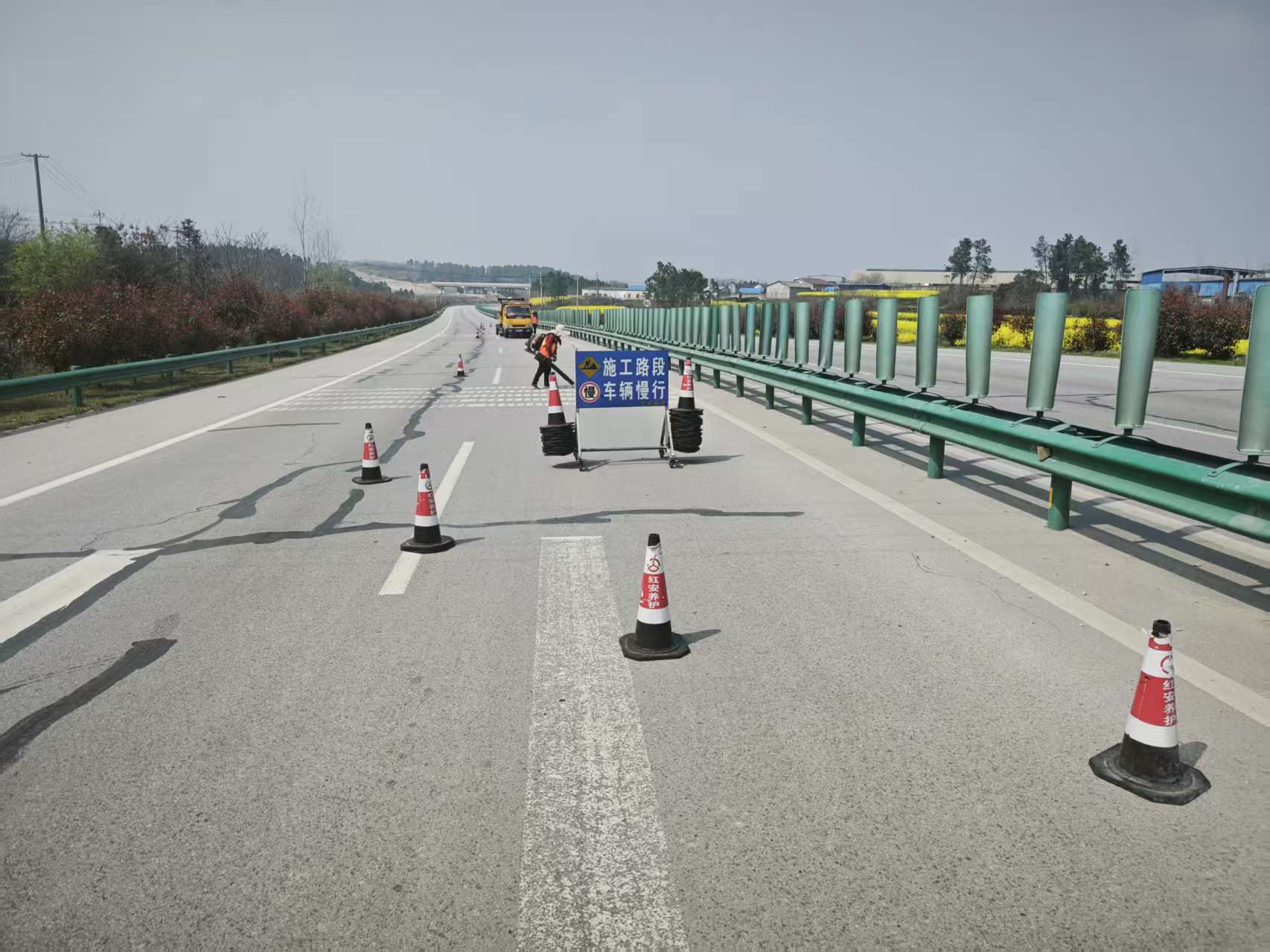 设施维护求“精”,强化安全防护效能。对公路沿线交通标志标牌、波形梁护栏、轮廓标、警示桩等交通设施开展拉网式排查整治,对污损标识进行清洗、对倾斜标牌进行扶正加固、对遮挡视线的路侧树枝进行修剪,确保各类交通设施齐全规范、清晰醒目,充分发挥其安全防护与通行引导作用。