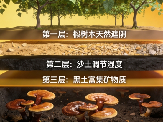 它选用了国内灵芝主产地——安徽金寨的优质赤芝。更特别的是它独有的多年生椴木三层种植法:上层放椴木段,给灵芝提供天然木质养分;中层是透气保水的沙土;底层是矿物质丰富的深层黑土。这种仿野生种植环境,能最大程度激发灵芝长势,让它积攒更多有效营养成分。