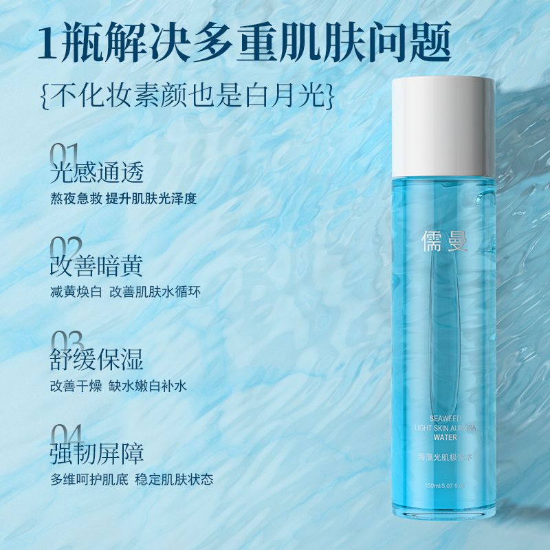 二、儒曼海藻光肌极光水四大核心优势,祛黄提亮更高效