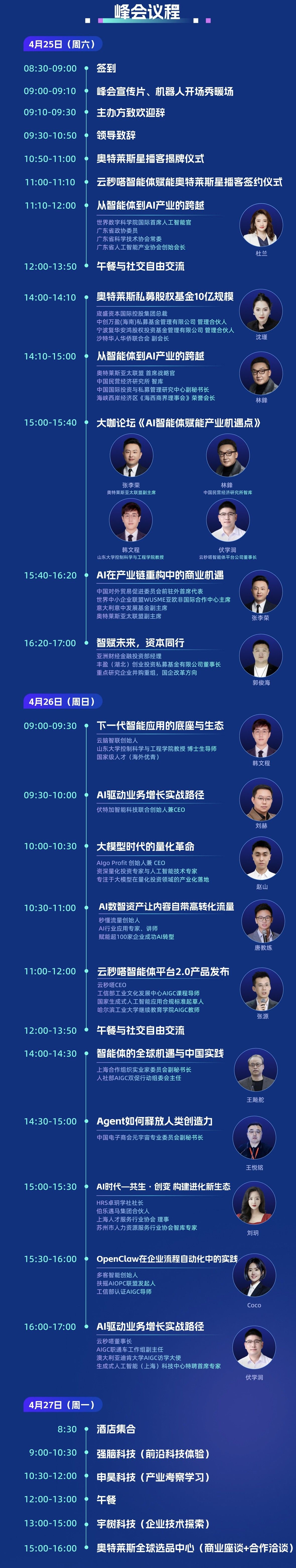 峰会期间,将有数十位行业大咖齐聚一堂,来自学术界、产业界的精英,也将从各自领域出发,围绕AI智能体技术创新、产业应用、商业模式等热点话题展开深入探讨,上演一场思想碰撞的“盛宴”,为参会者带来前瞻性的思考与启发。
