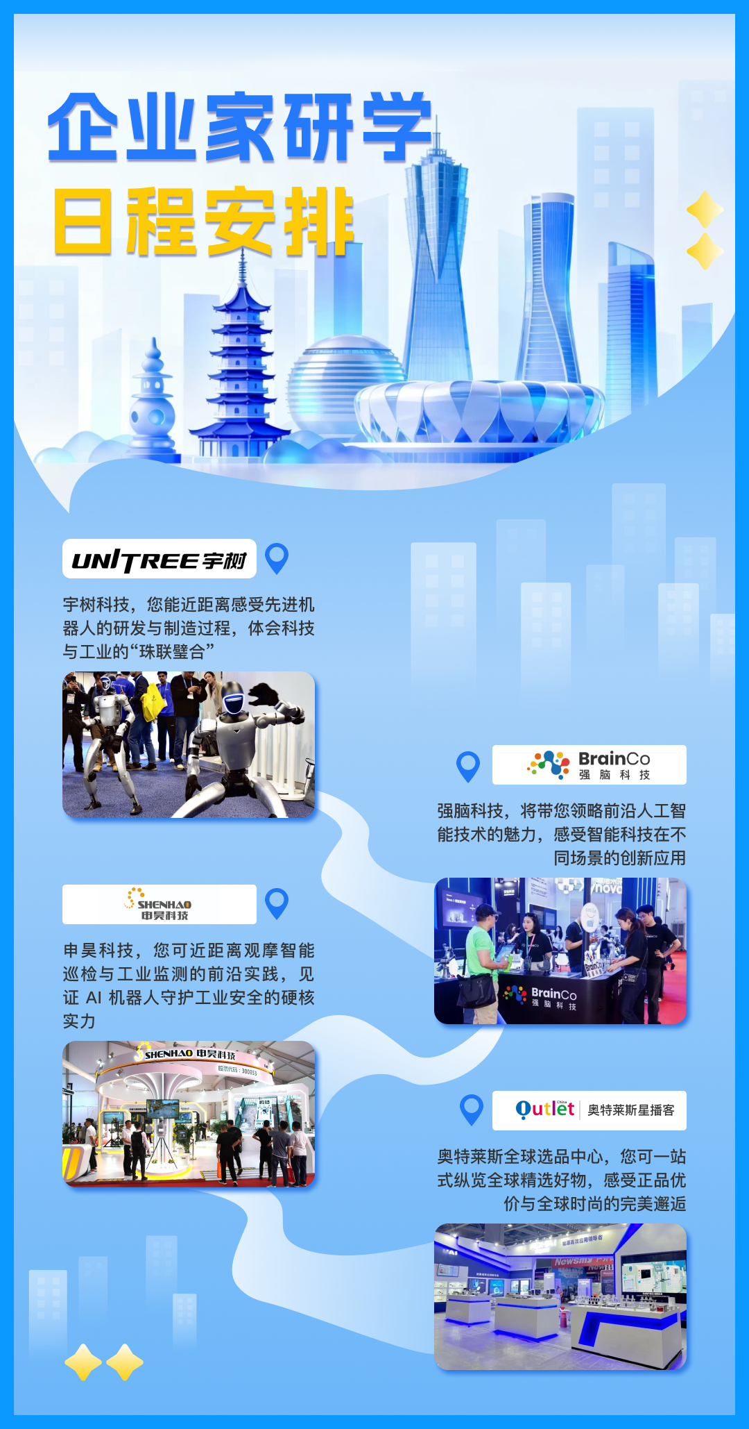 峰会精心安排了4+名企游学活动,宇树科技、强脑科技、申昊科技、奥特莱斯全球选品中心等知名企业与创新平台赫然在列。