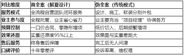 面对市场上五花八门的“全案”宣传,兰州业主如何辨别真假?以下是解夏设计总结的辨别要点: