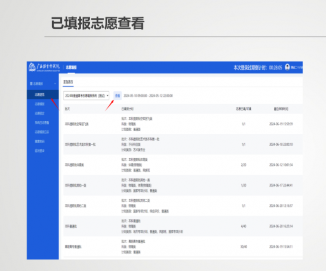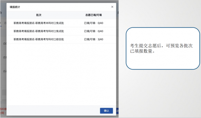 考生提交志愿后,可预览各批次已填报数量。
