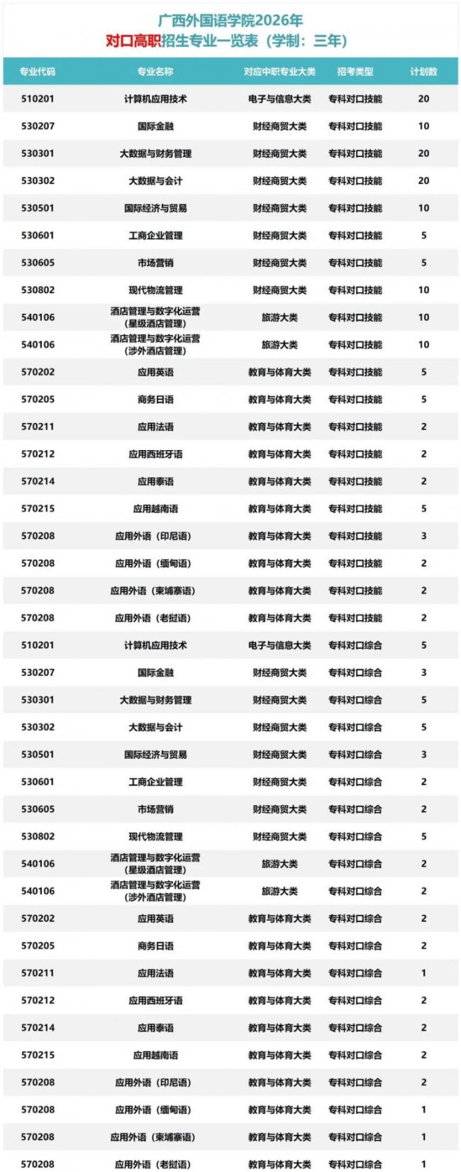 备注:招生专业、招生计划最终以广西壮族自治区招生考试院公布为准。