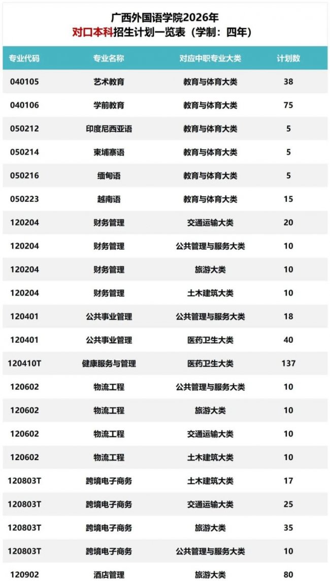 对口本科直通广西外院,计划充足好上岸