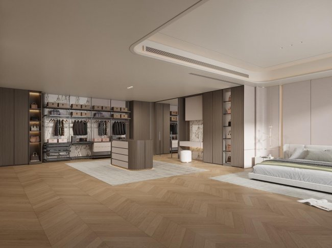 卧室衣柜:采用“90%悬挂式+竖立式收纳”组合,搭配分区抽屉、内衣格、裤架,衣物分类清晰,告别褶皱杂乱;