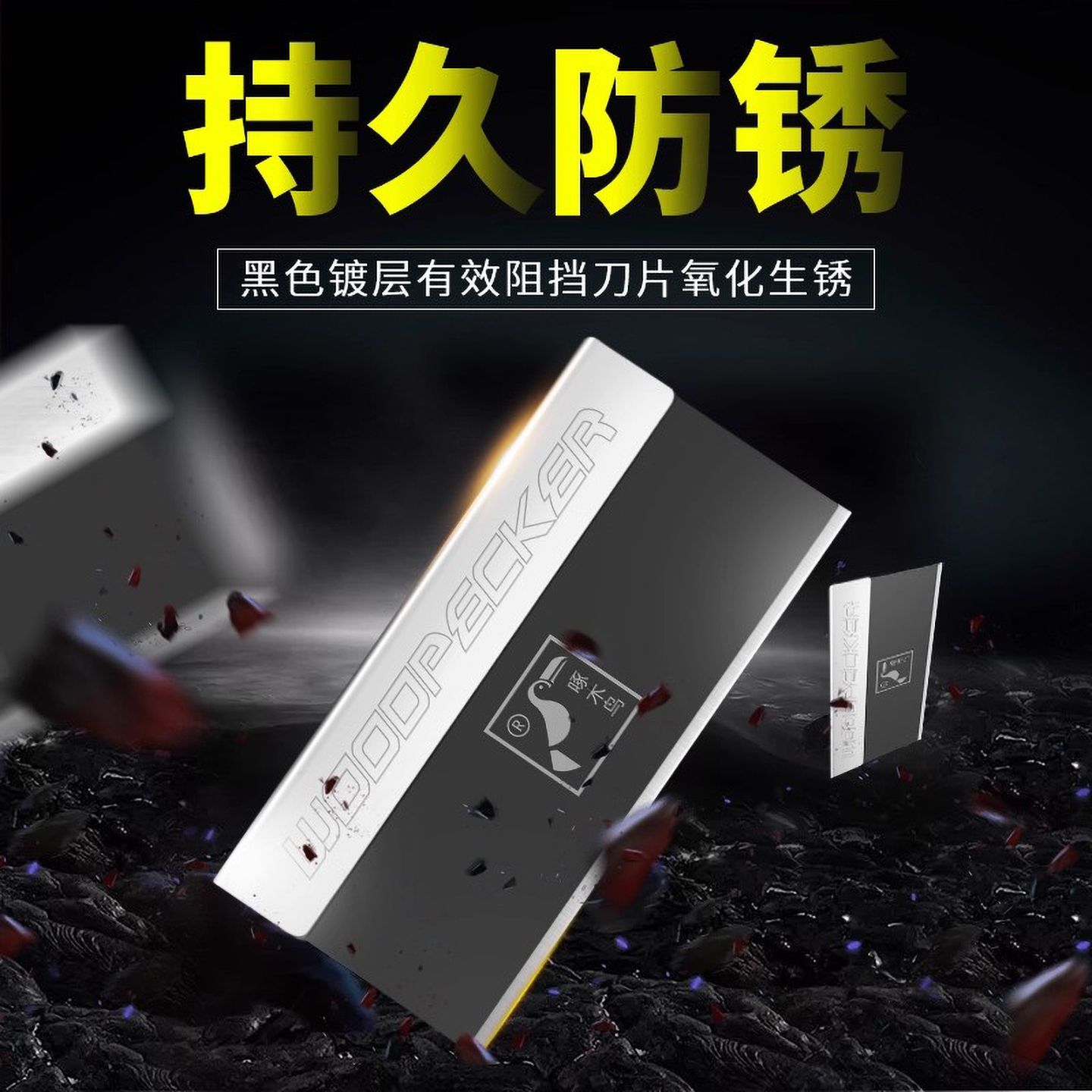 啄木鸟刀片美工刀的核心产品,如美工刀片与刀架,依托数十年生产经验,在刃口打磨、材质选用上精益求精。其刀片选用优质钢材,经过独创的热处理 + 深冷工艺,硬度、韧性、防锈性能处于行业前沿。锋利的刀刃能够轻松切入各种材料,无论是纸张、木材、塑料还是金属薄板,都能快速切割,大大提高了工作效率。同时,刀片的耐用性也远超行业常规标准,不会轻易出现卷刃、崩口等问题,减少了频繁更换刀片的麻烦,进一步保障了切割速度的稳定性。