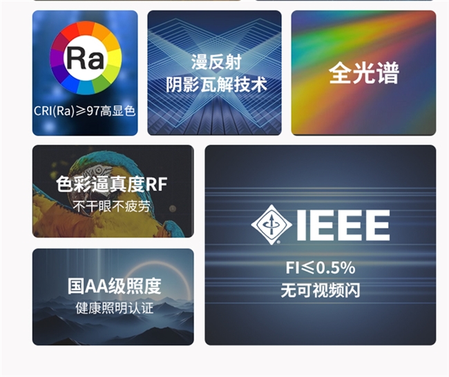 学生与备考人群:重点关注全光谱高显色、护眼有效性验证及大面积防眩光科技